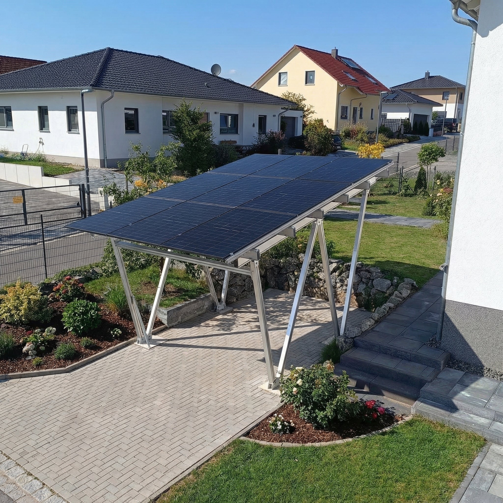 Solar-Carport aus hochwertigem Aluminium, eloxiert.